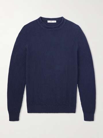 Moss Ribbed Linen and Cotton-Blend Sweater