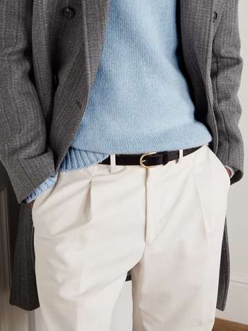 3.5cm Leather-Trimmed Woven Elastic Belt