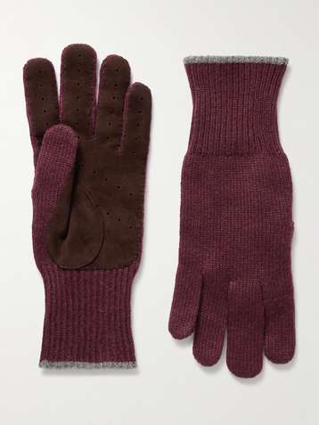Storm System Suede-Trimmed Padded Cashmere Gloves