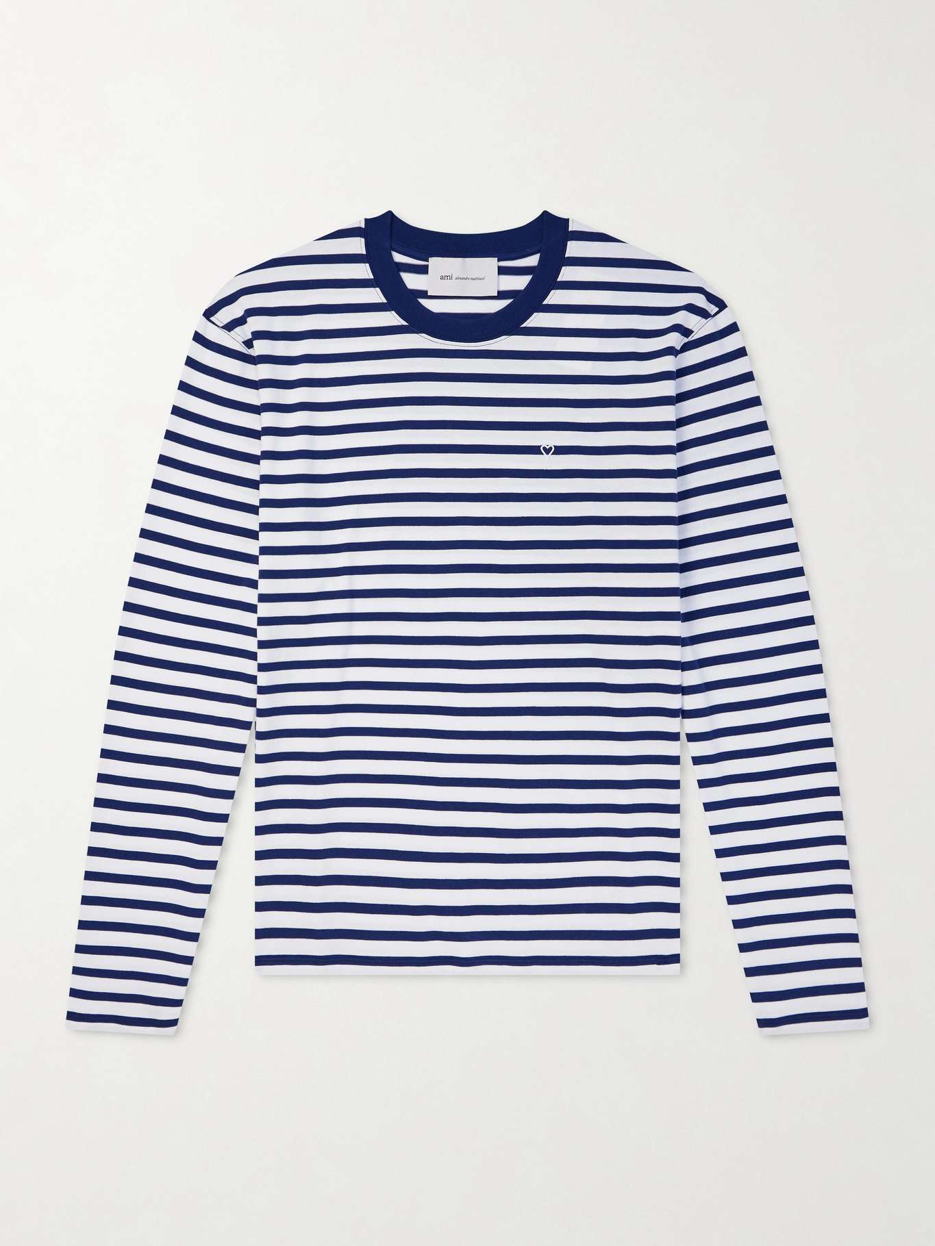 AMI PARIS Quota Logo-Print Striped Cotton-Jersey T-Shirt