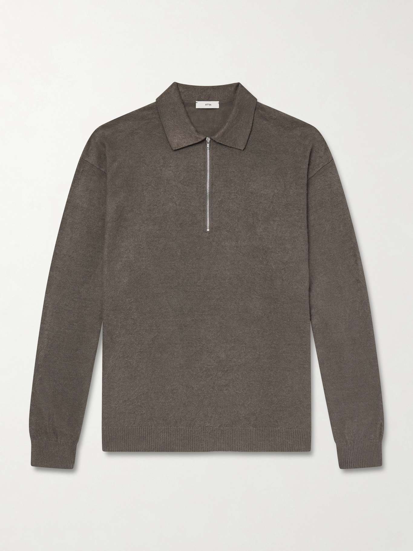 ATON Linen and Cotton-Blend Half-Zip Polo Sweater