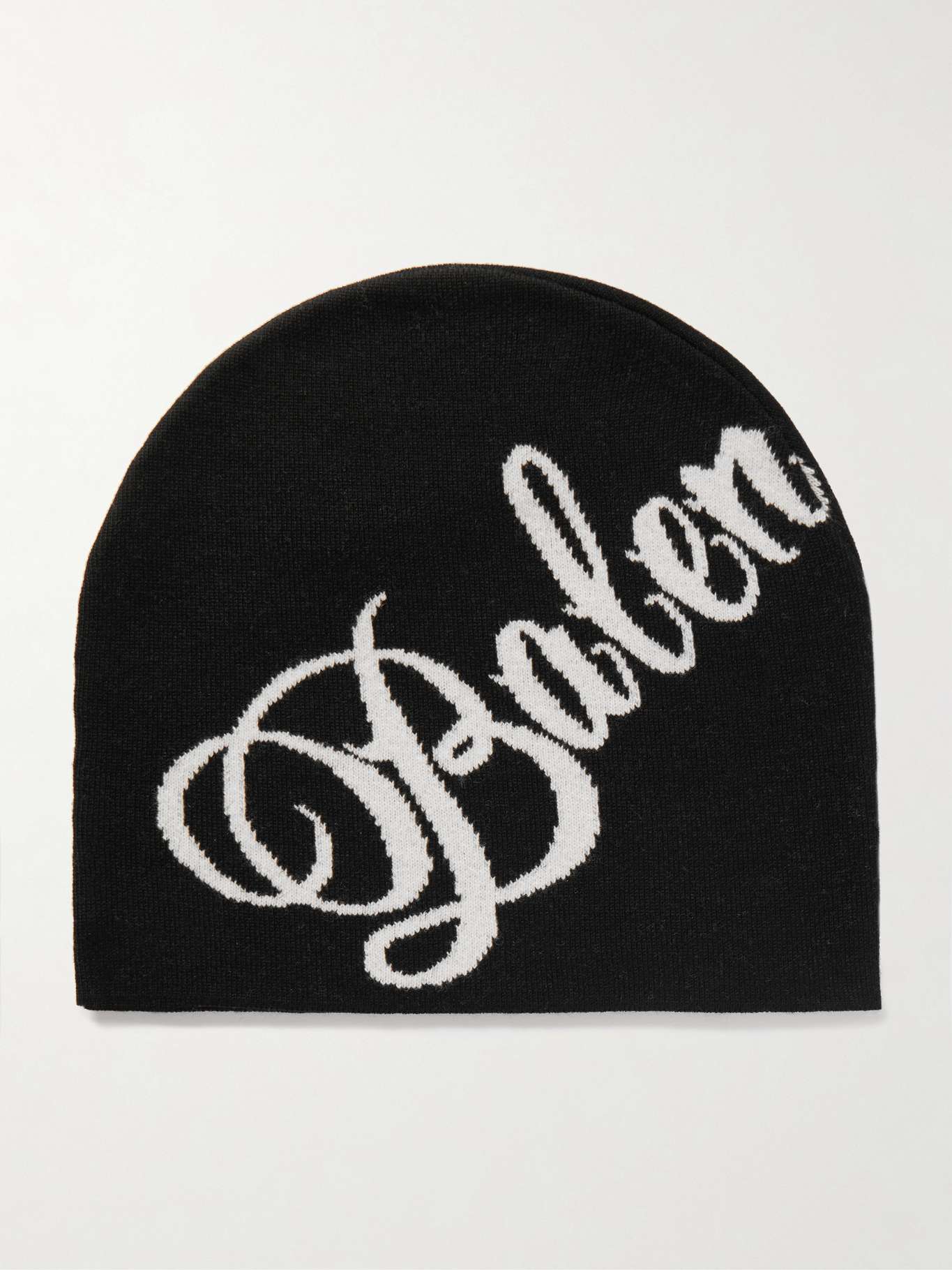 Balenciaga's beanie is intarsia-knitted with arched lettering from the front to back. It's made from black and white wool-blend and has a close fit, with concealed seams at the top.