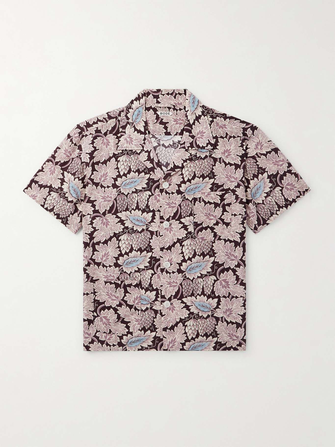 Emily Adams Bode Aujla draws on the charm of traditional techniques and textiles when designing BODE's collections. This camp-collar 'Wisteria' shirt, made from a lightweight cotton and silk-blend, is printed with an ornate botanical motif inspired by a Victorian pattern.