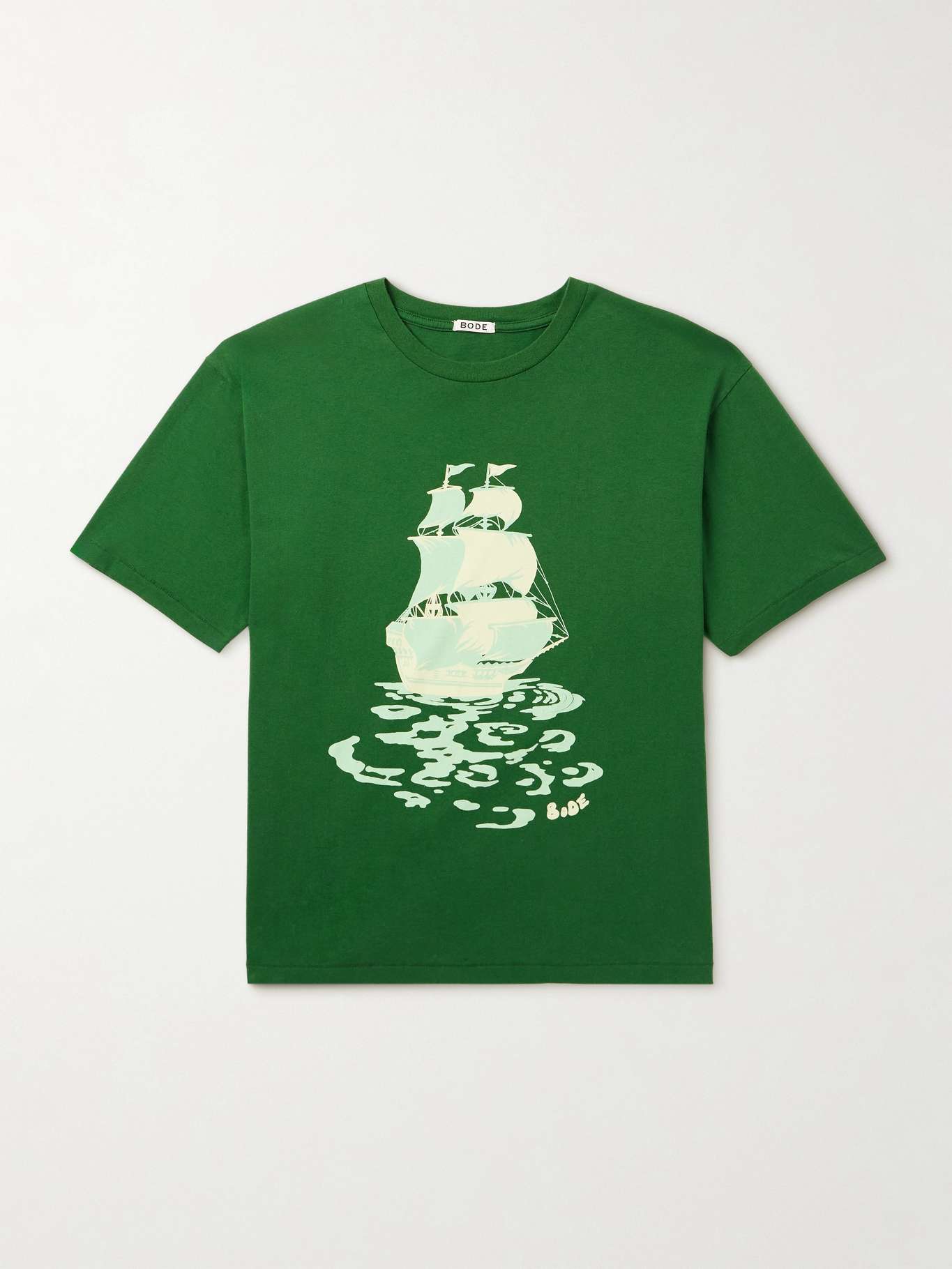 BODE's AW25 collection pays tribute to the life and works of Morris 'Moose' Charlap, the primary composer for the Broadway musical Peter Pan, which debuted at the Winter Garden Theatre on Broadway in 1954. This T-shirt is cut from soft cotton-jersey and printed with Captain Hook's Jolly Roger pirate ship.