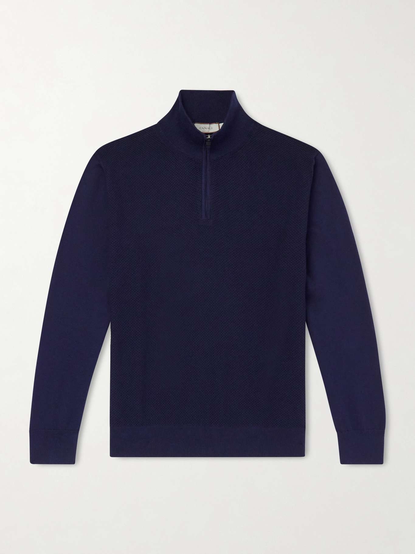CANALI Honeycomb-Knit Cotton Half-Zip Sweater