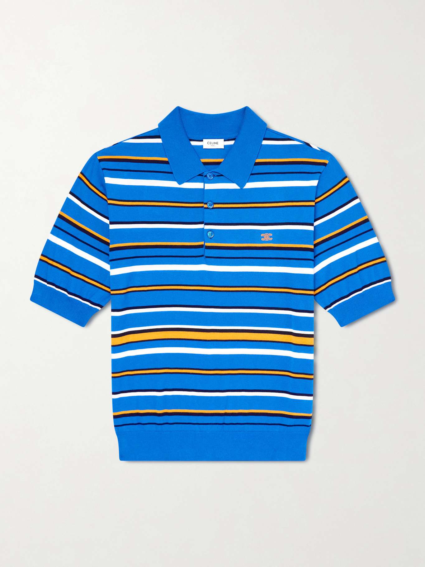 CELINE Slim-Fit Logo-Embroidered Striped Cotton Polo Shirt