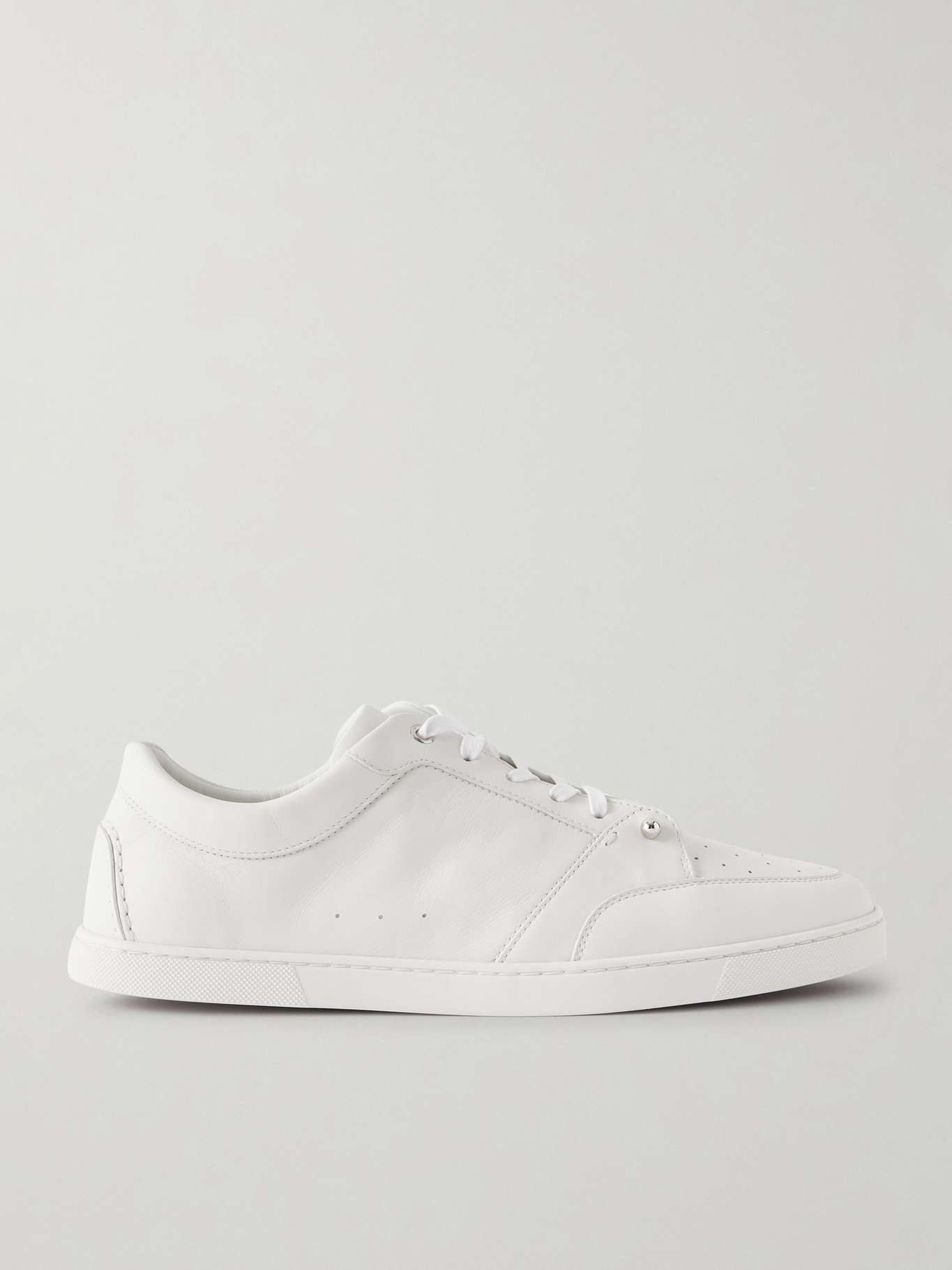 Christian Louboutin's 'Chambelisneak' sneakers come in a sleek all-white palette, except for the brand's signature red soles that can be seen as you walk. They've been made in Italy from smooth leather with distinctive silver-tone 'piercings' on the perforated toes.