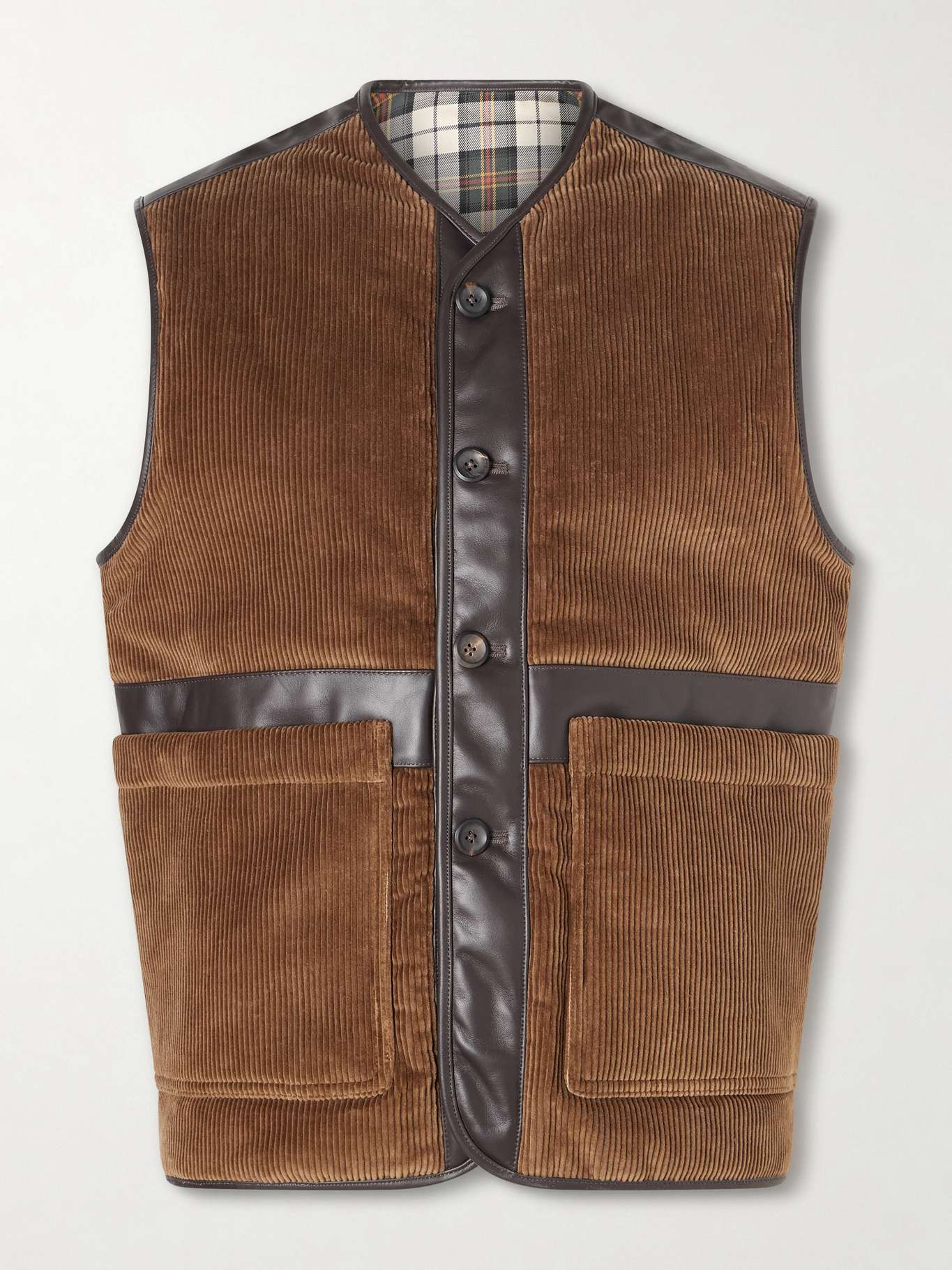 DRAKE'S Padded Leather-Trimmed Cotton-Corduroy Gilet