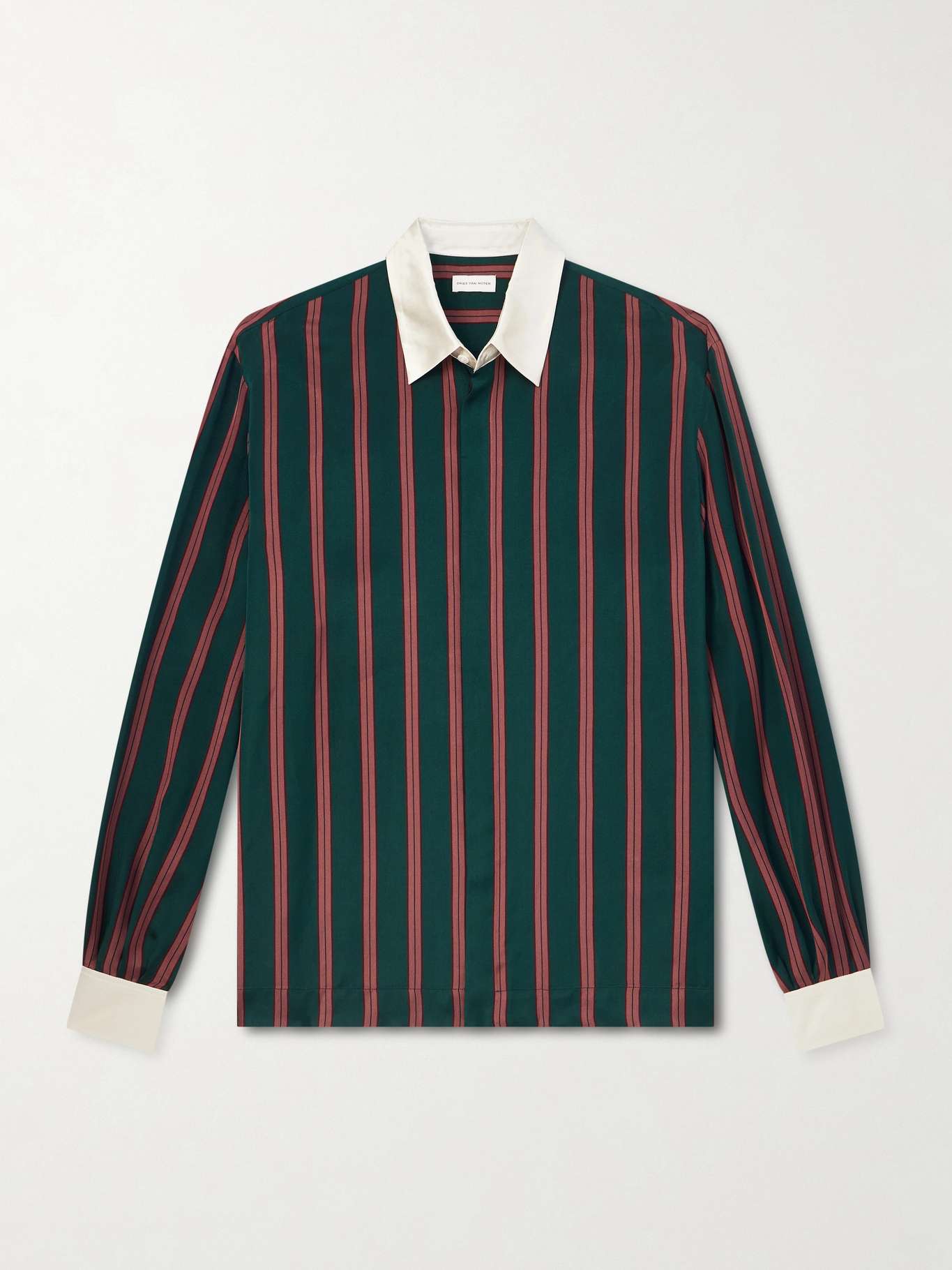 Dries Van Noten's use of fabrics is artfully considered. This shirt is made from lustrous satin with a bold striped pattern and has a contrasting collar and cuffs.