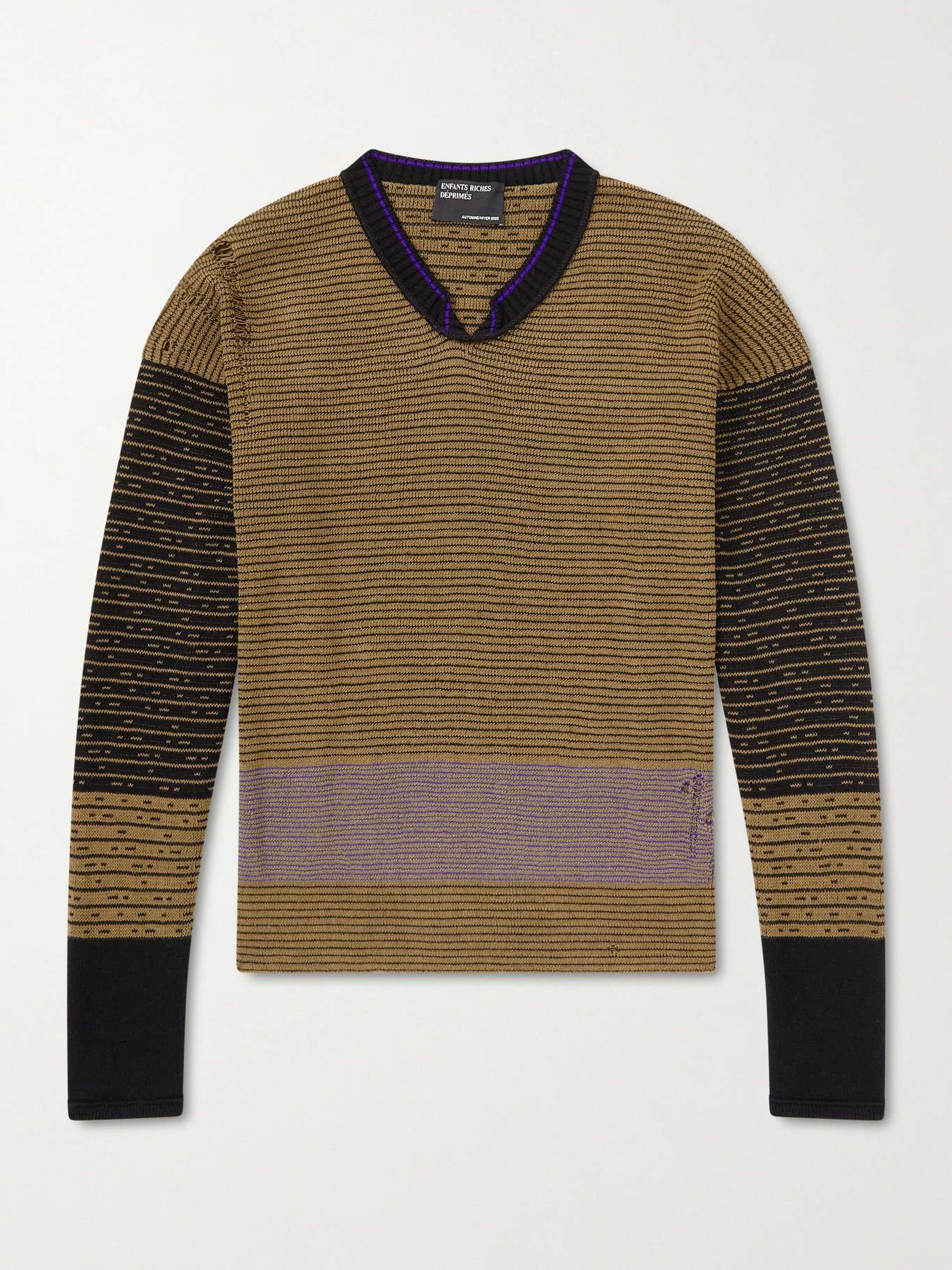 Enfants Riches Déprimés take inspiration from the grungy dress codes of LA's subcultures. This striped 'Go Ask Alice' sweater has been custom knitted in Italy from soft cotton. The distressed details are all completed by hand for a love-worn look.