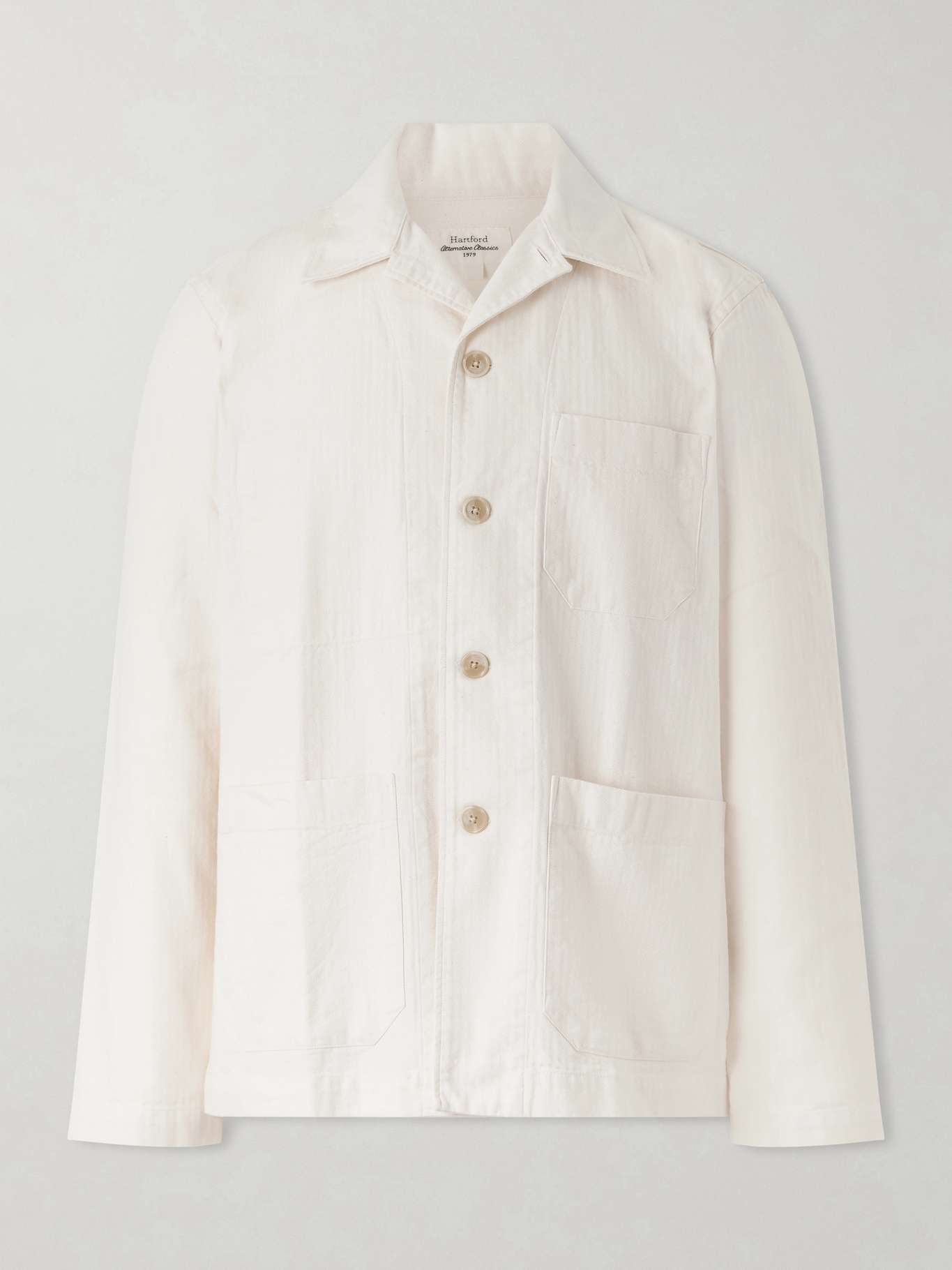 Unlined for a soft structure and cut from herringbone cotton, Hartford's workwear-inspired jacket is tailored in a regular fit with a chest patch pocket and two at the waist. The label is known for easy, understated pieces suited to everyday wear.