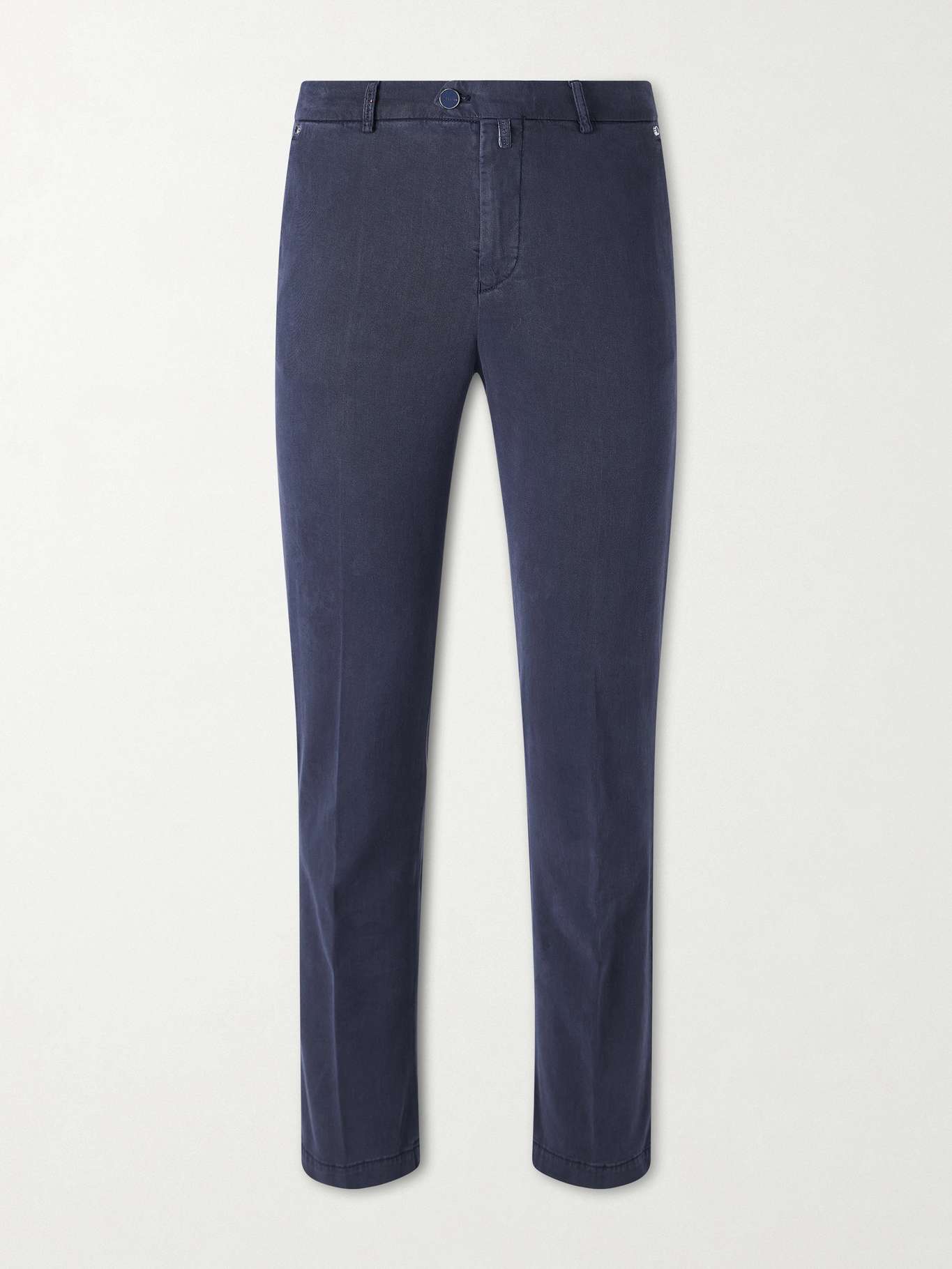 Kiton's trousers are made from Lyocell, a fibre that's prized for its softness and breathability, and a touch of stretch to perfect the fit. Dyed navy, they're cut in a straight-leg shape and set on a partially elasticated waistband.
