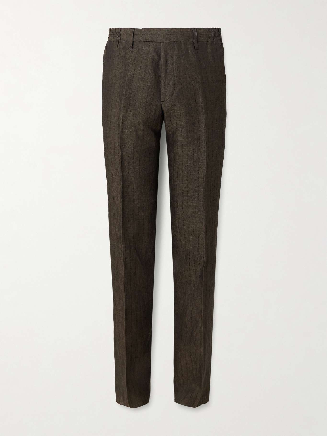 DESIGNED BY MR PORTER. Mr P.'s suit trousers are comfortably elasticated along the side waist. They're tailored for a straight, streamlined fit from breathable linen woven with slightly raised stripes.