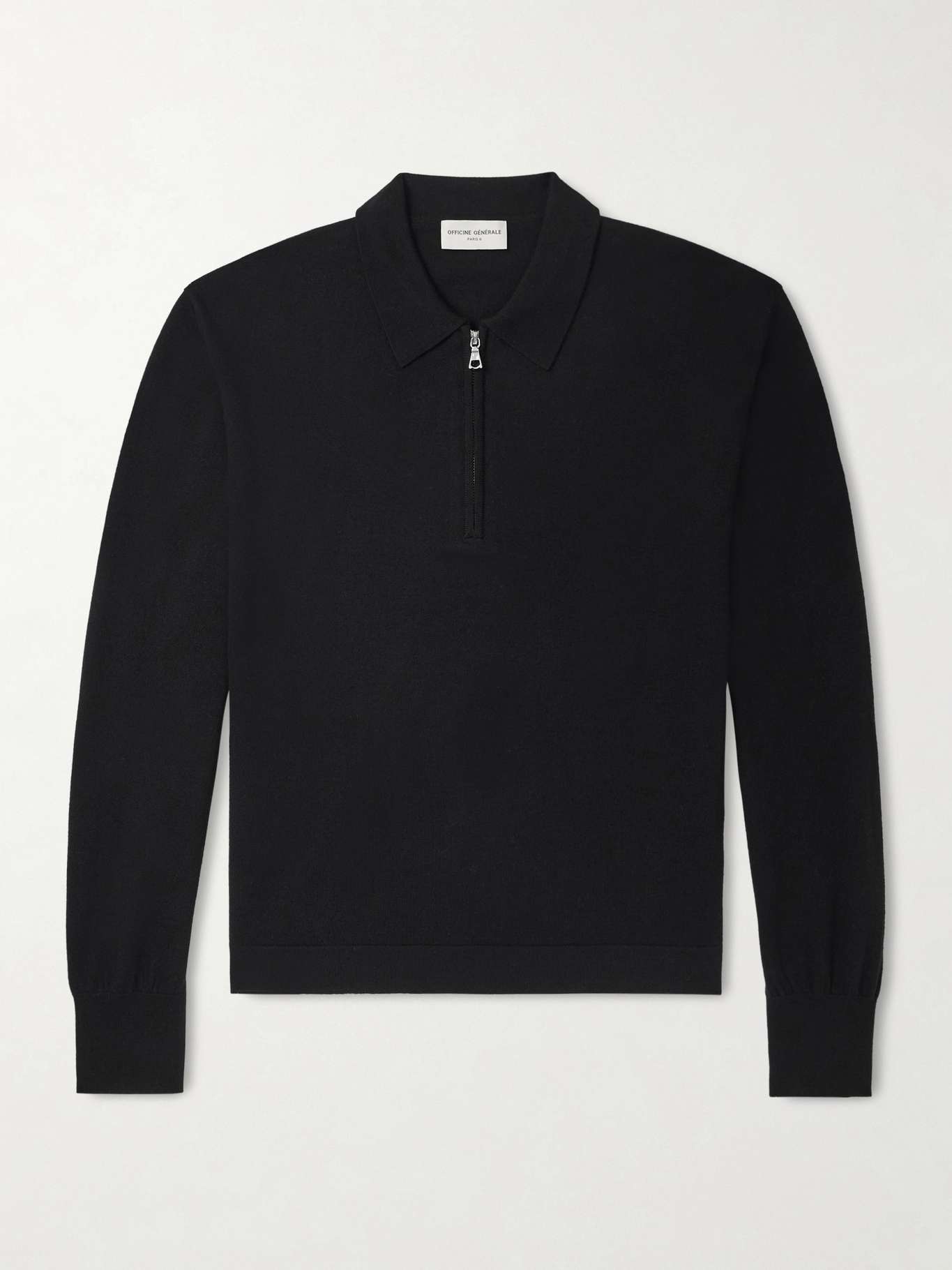 OFFICINE GÉNÉRALE Bene Merino Wool Half-Zip Polo Shirt
