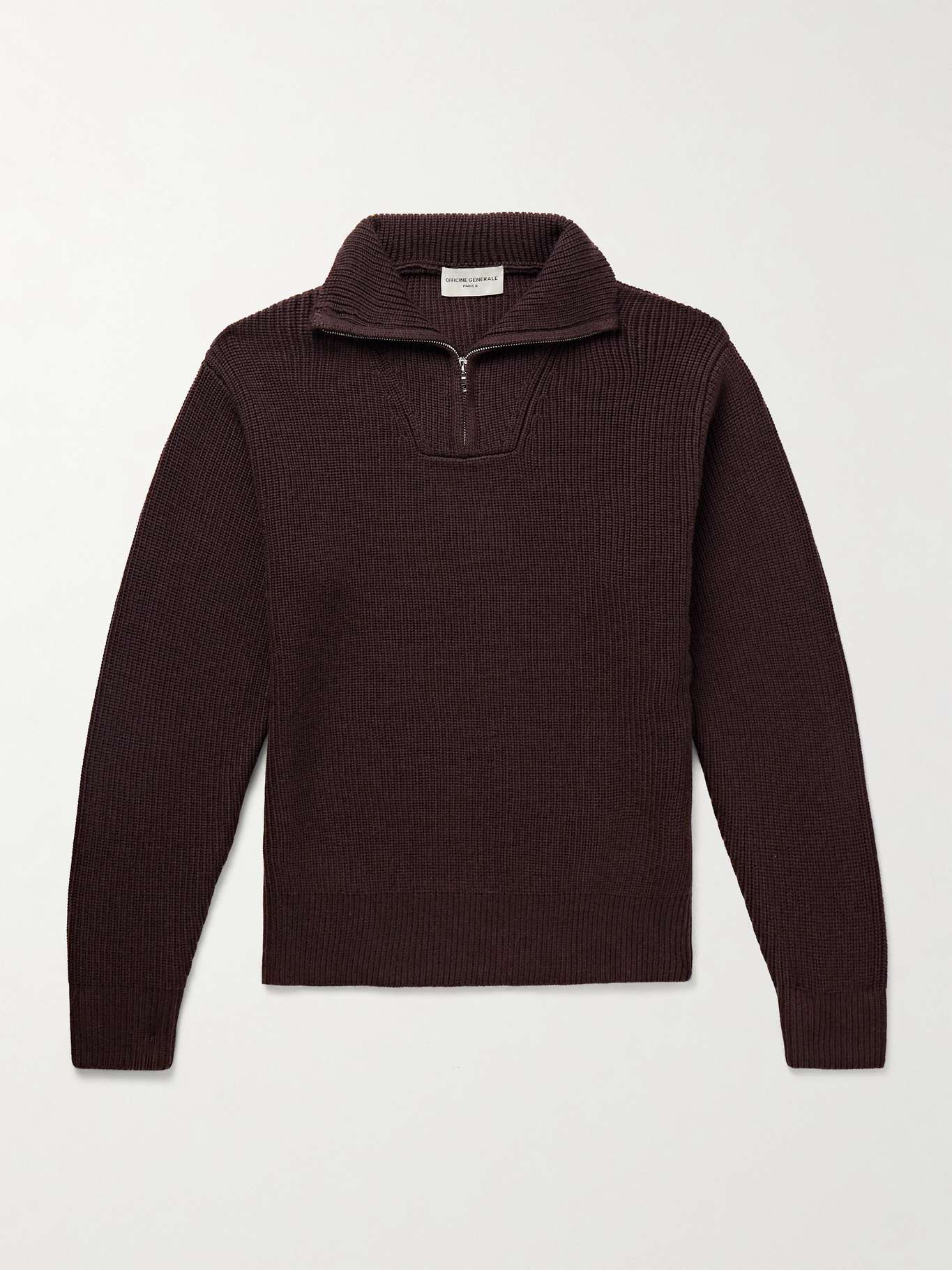 OFFICINE GÉNÉRALE Tarek Ribbed Merino Wool Half-Zip Sweater