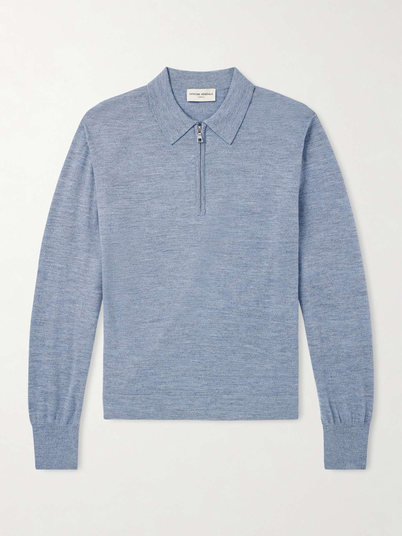 OFFICINE GÉNÉRALE Bene Merino Wool Half-Zip Polo Shirt