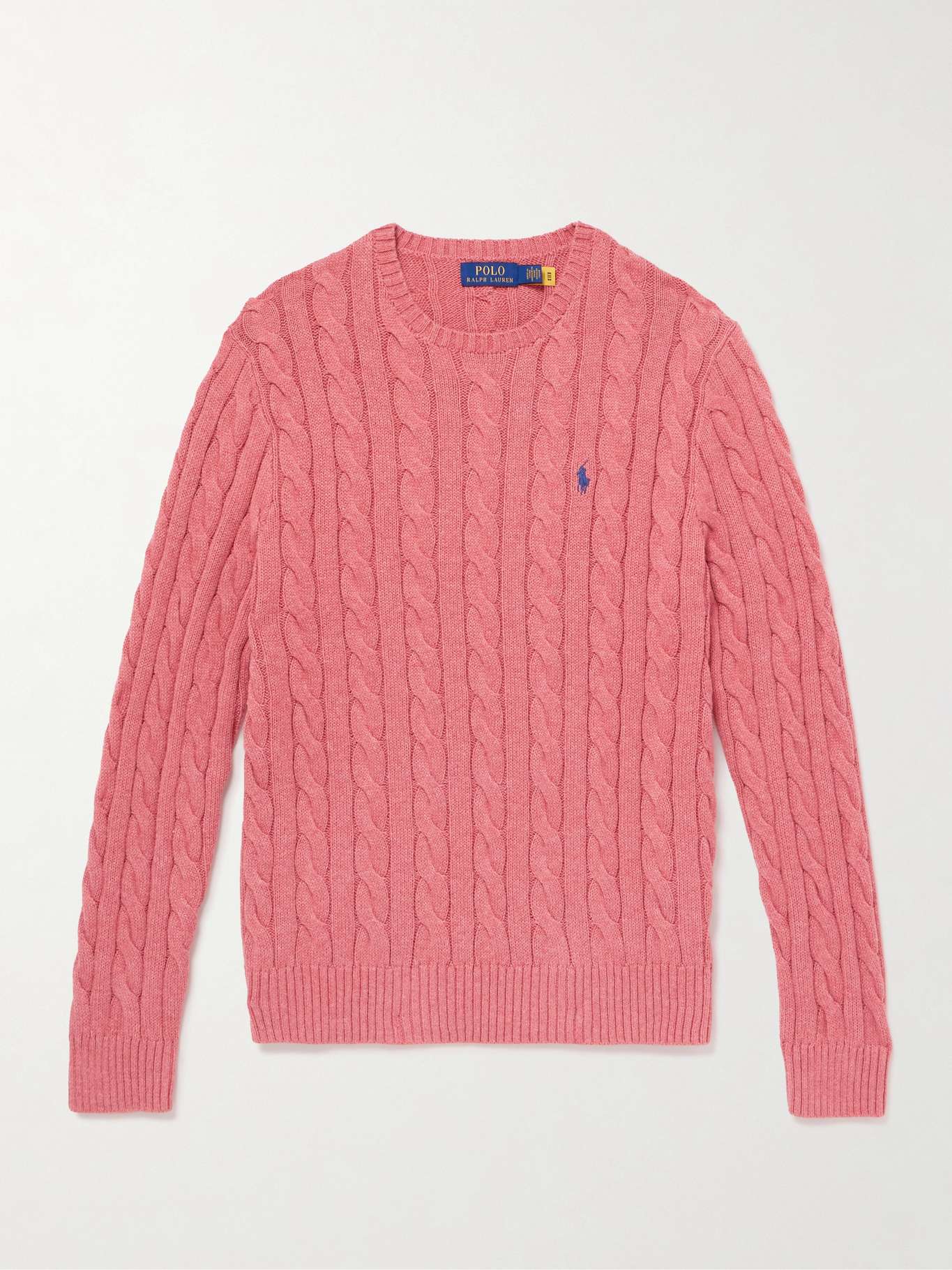 POLO RALPH LAUREN Logo-Embroidered Cable-Knit Cotton Sweater