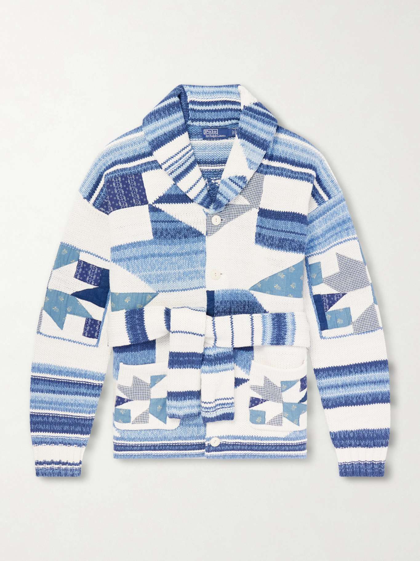 POLO RALPH LAUREN Shawl-Collar Patchwork Cotton and Linen-Blend Cardigan