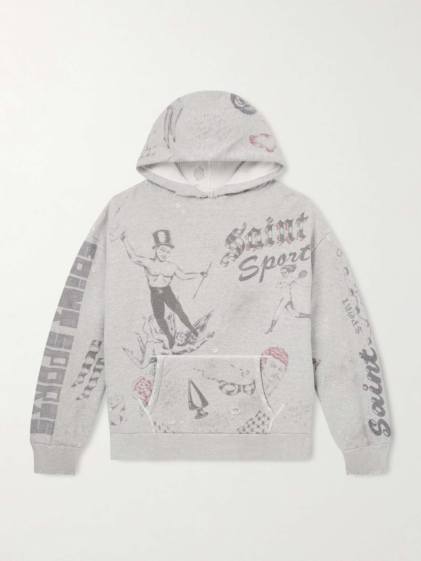 SAINT MXXXXXX Printed Distressed Cotton-Jersey Hoodie