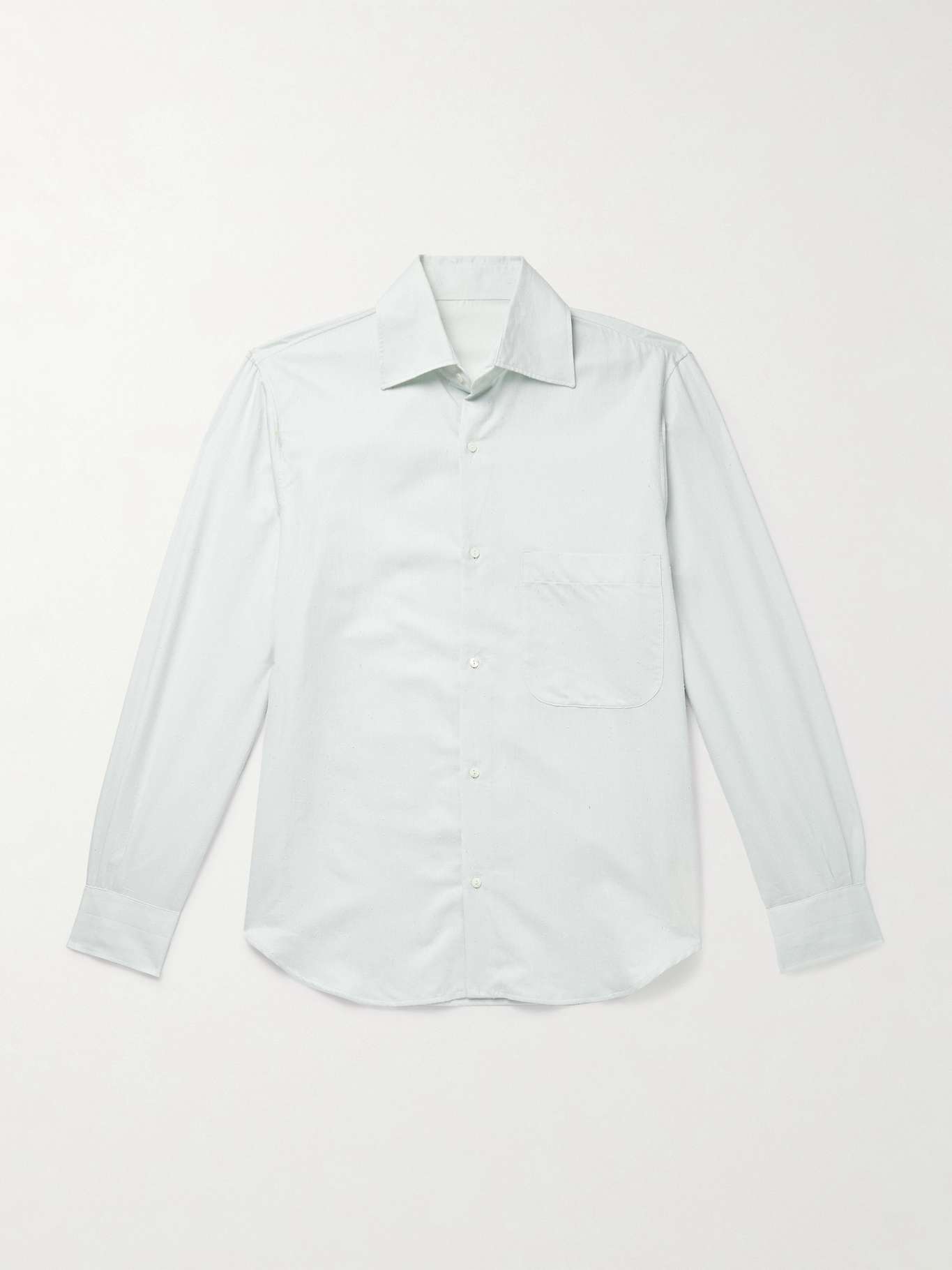 Stòffa's designs undergo meticulous testing to ensure each garment ages gracefully with wear. This shirt is cut from subtly slubbed cotton and wool-blend. It's tailored with a spread collar, pleated cuffs and a curved hem.