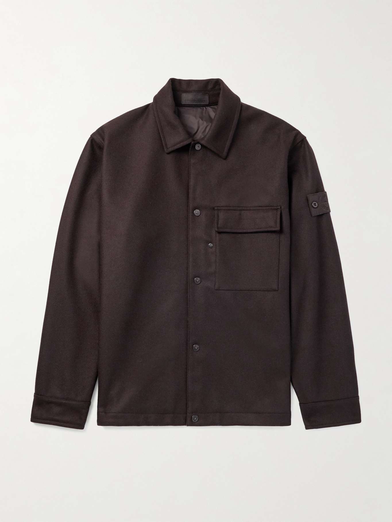Stone Island's 'Textile Research Lab' is renowned for fabric development and innovation. From the camouflage-inspired 'Ghost' line, this overshirt is made from virgin wool-flannel, blended with nylon for durability, and appliquéd with a tonal compass patch on the sleeve.