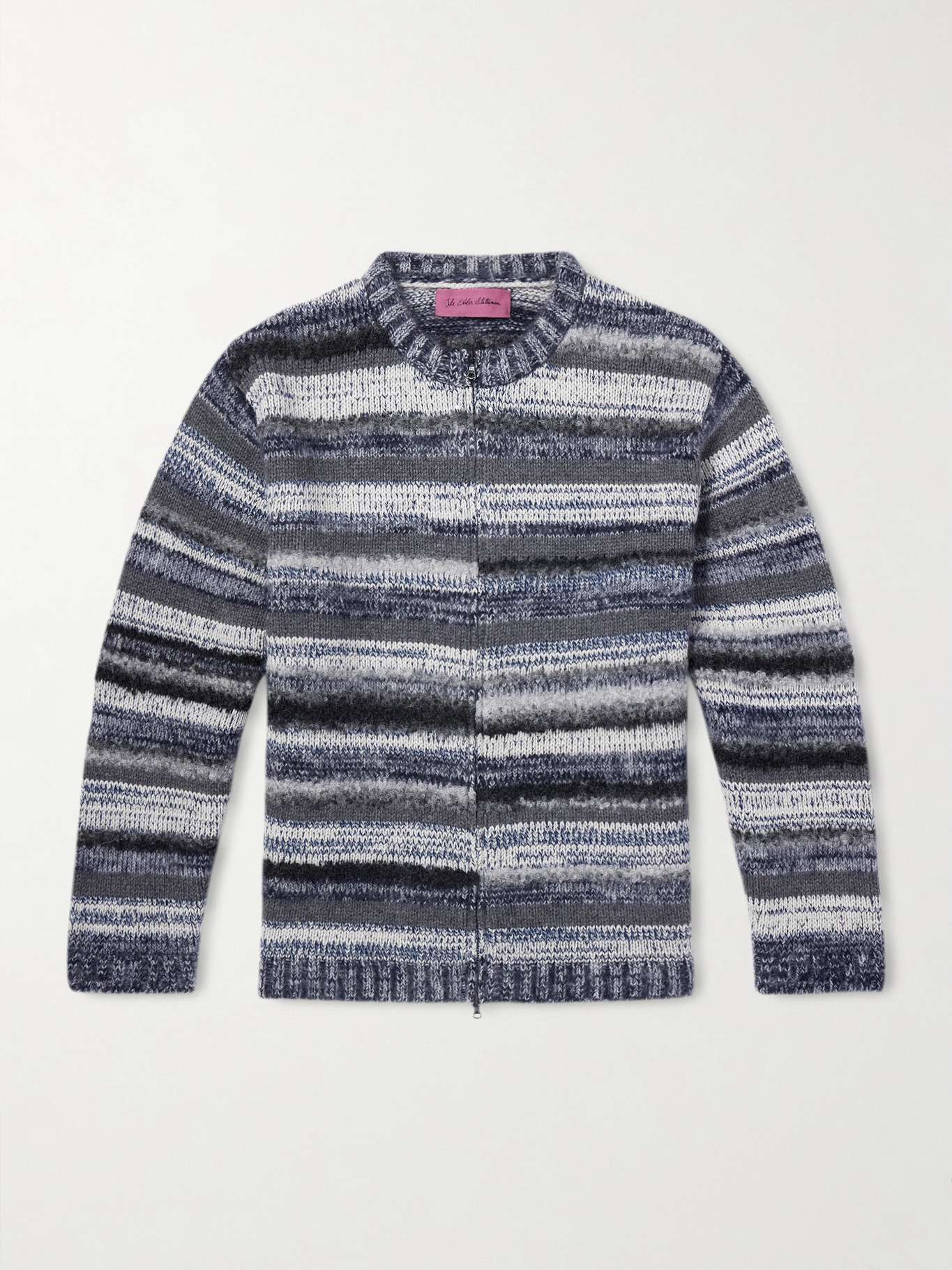 THE ELDER STATESMAN Boucle Striped Cashmere-Blend Zip-Up Cardigan