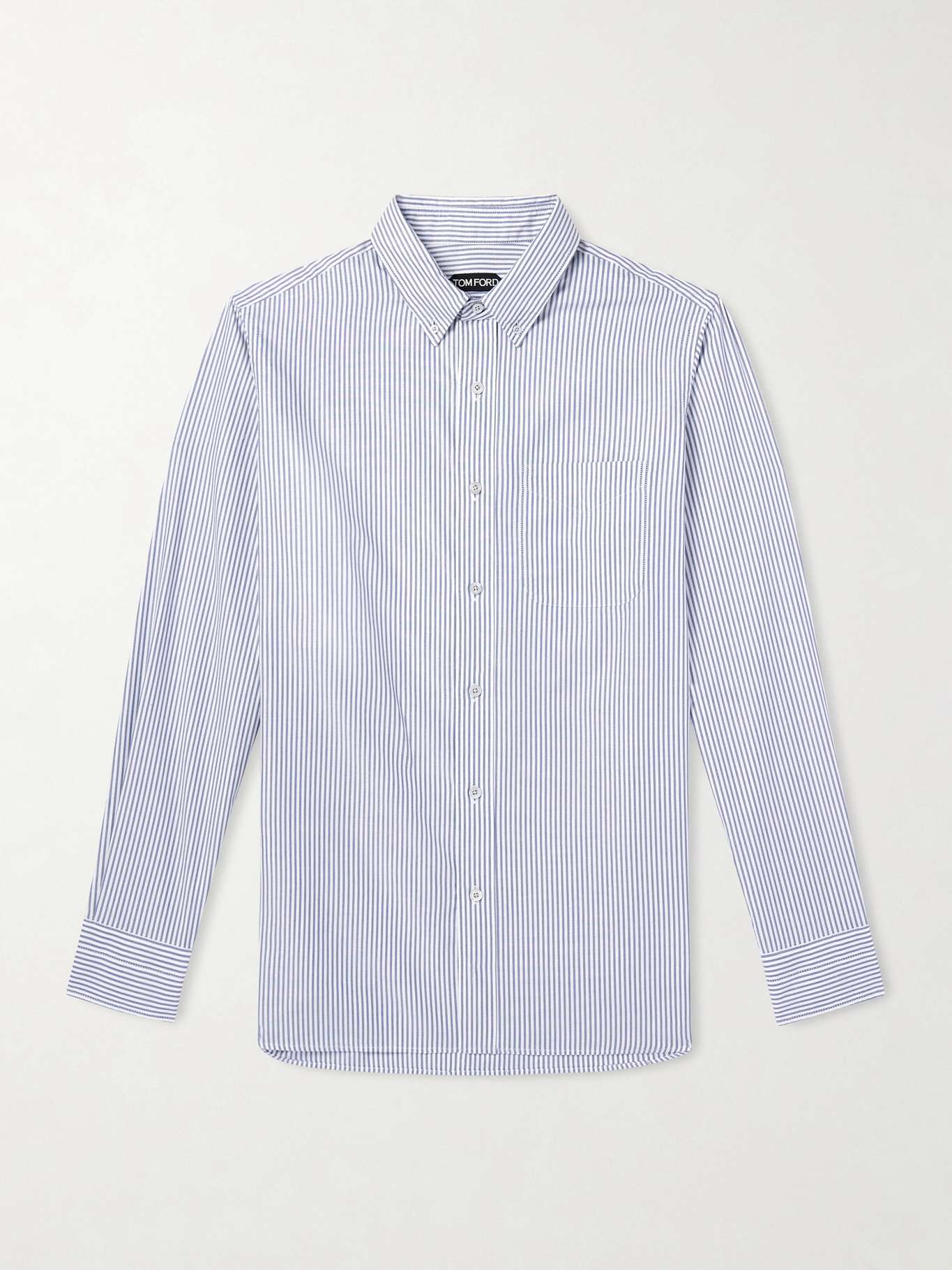TOM FORD Button-Down Collar Striped Cotton and Lyocell-Blend Oxford Shirt