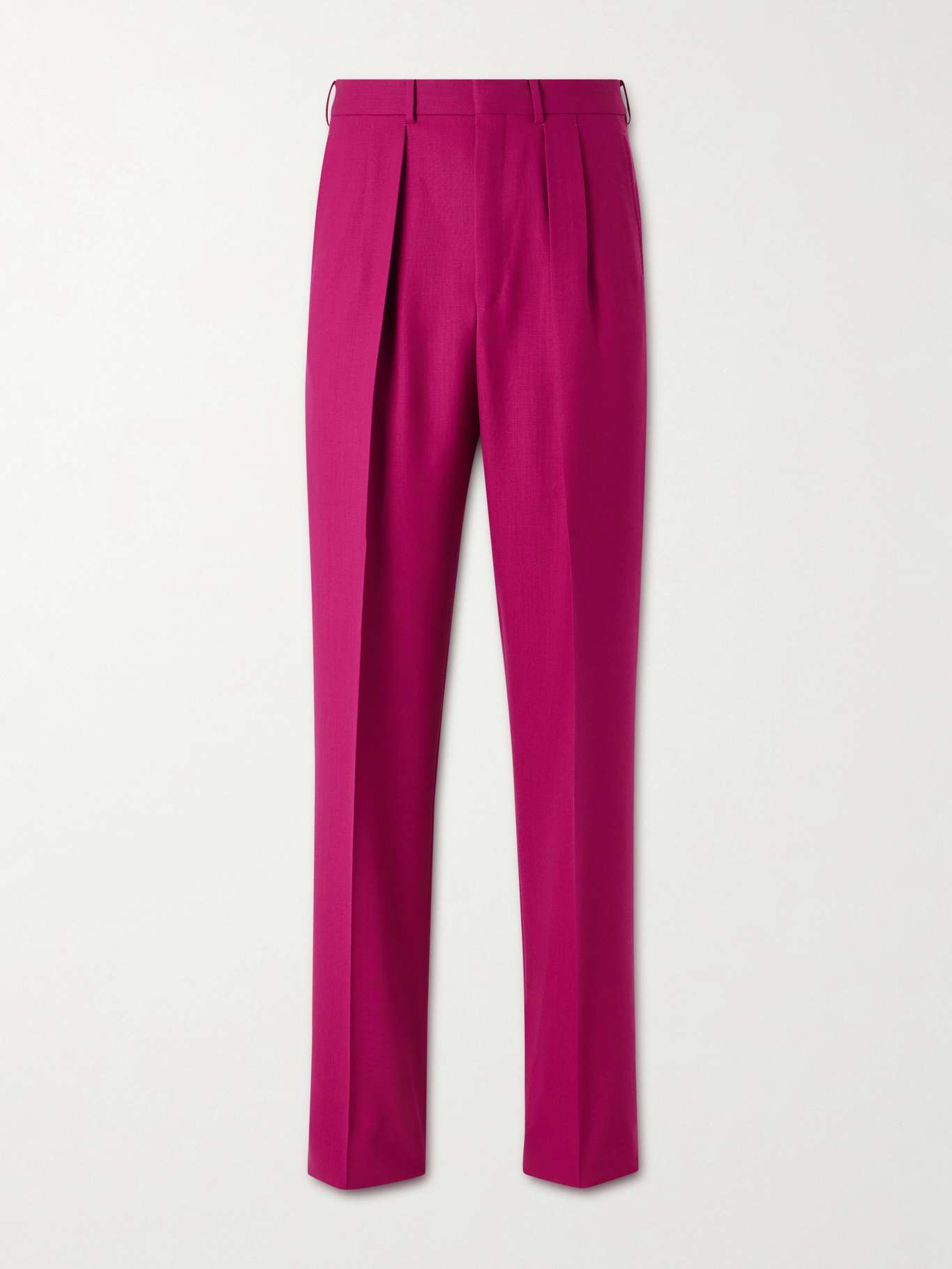 These suit trousers illustrate TOM FORD's tailoring expertise. Cut from wool-twill, they're accented with front pleats for extra room in the thighs. Pair them with the matching pink jacket for an unforgettable night.