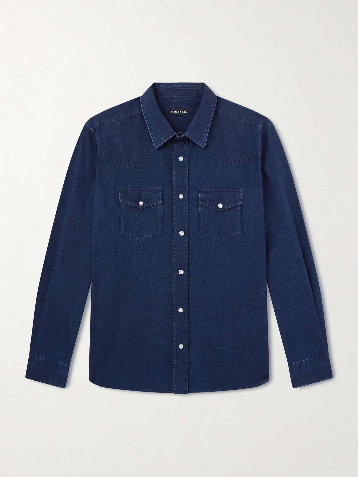 For a more refined take on the Western shirt, look to this one from TOM FORD. Made from dark-wash denim, it has classic pointed yokes on the shoulders and pearlescent snaps dotting the pockets and placket.