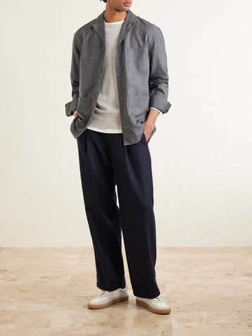 Sheldon Camp-Collar Virgin Wool, Silk and Linen-Blend Suit Jacket