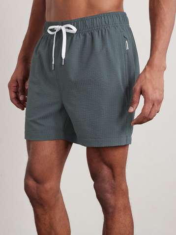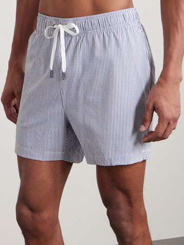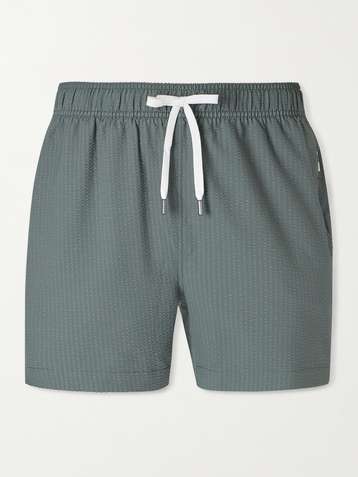 Mid-Length Cotton-Blend Seersucker Swim Shorts