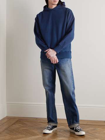 Indigo-Dyed Organic Cotton-Jersey Hoodie