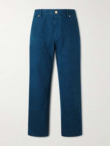 Straight-Leg Embellished Cotton-Gabardine Trousers