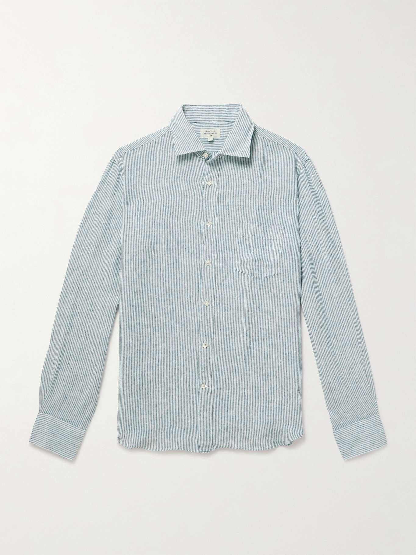 Hartford's shirt is cut from striped linen, so it's naturally lightweight and breathable. The natural wrinkling just adds to its effortless feel.