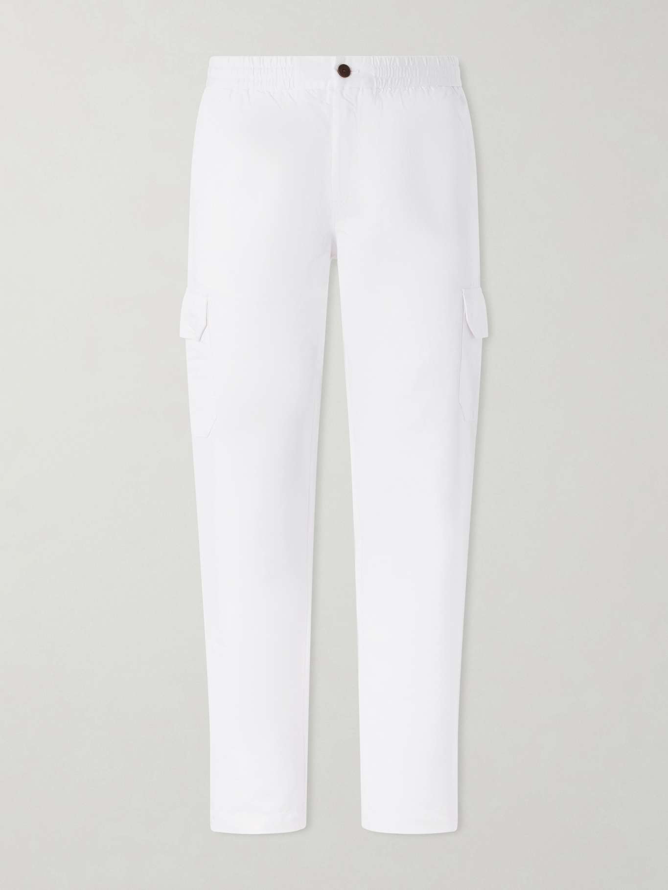 Gently tapered, Mr P.'s trousers are cut from a cotton and linen-blend and feature cargo patch pockets at the sides. An elasticated drawstring waistband ensures comfort, while rear buttoned welt pockets reference tailored styles; pair with workwear shirts or a blazer for contrast.