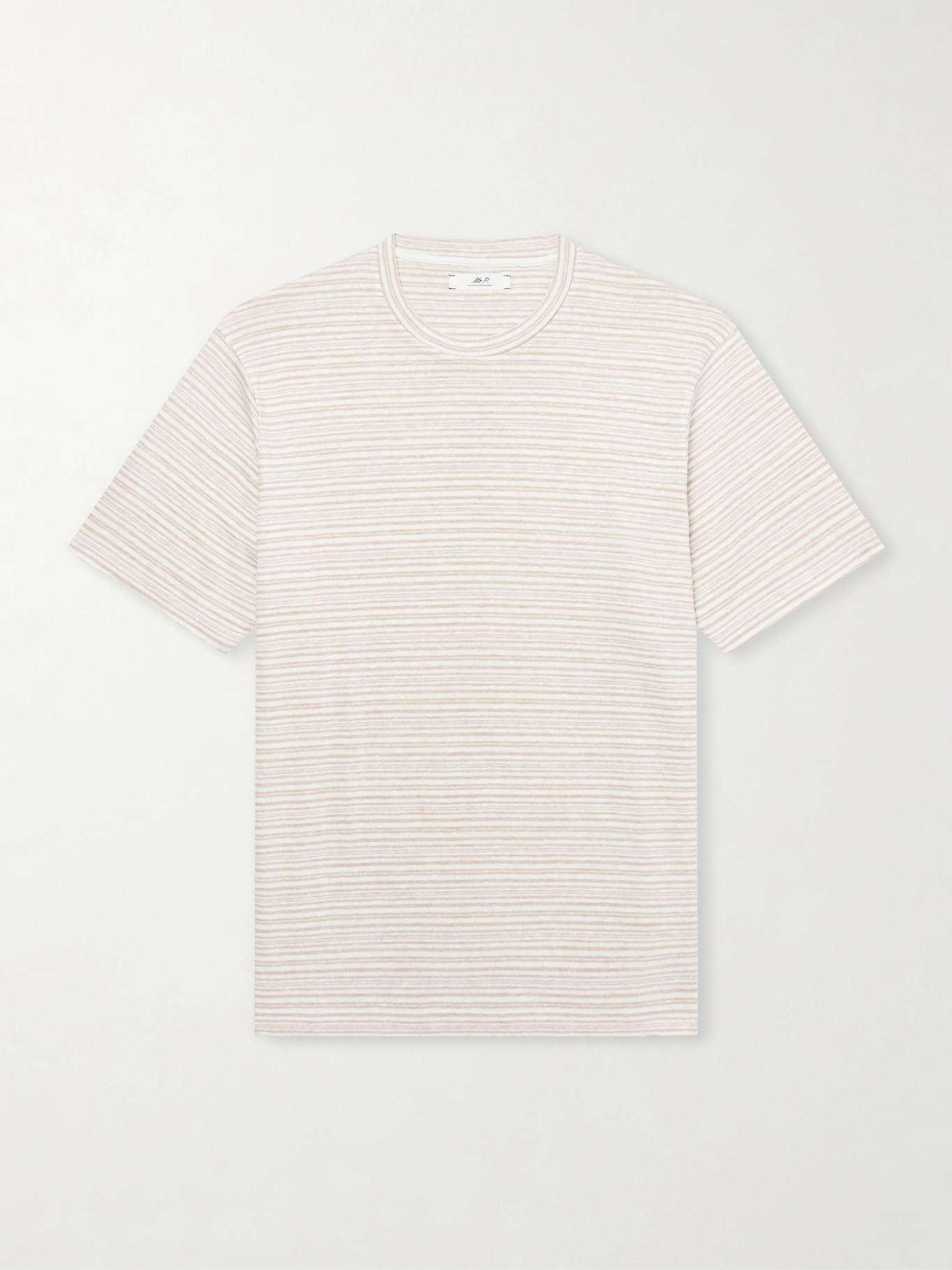 DESIGNED BY MR PORTER. Mr P. offers an elevated take on the classic T-shirt. Made from breathable linen, it's printed with minimal stripes, pairing well with a neutral color palette.