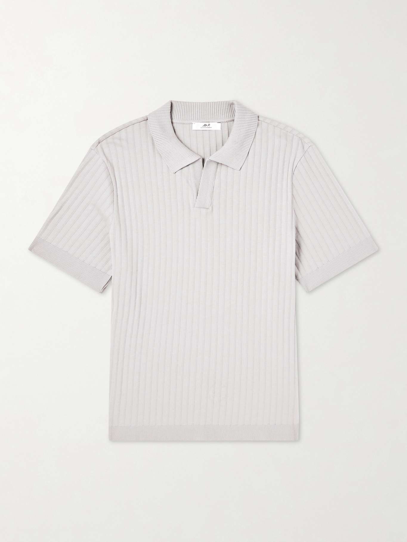 DESIGNED BY MR PORTER.Mr P.'s polo shirt is knitted from soft, ribbed organic cotton in a light, neutral tone. The open placket lends ease to the clean, regular-fit silhouette, while ribbed cuffs and hem complete the design.