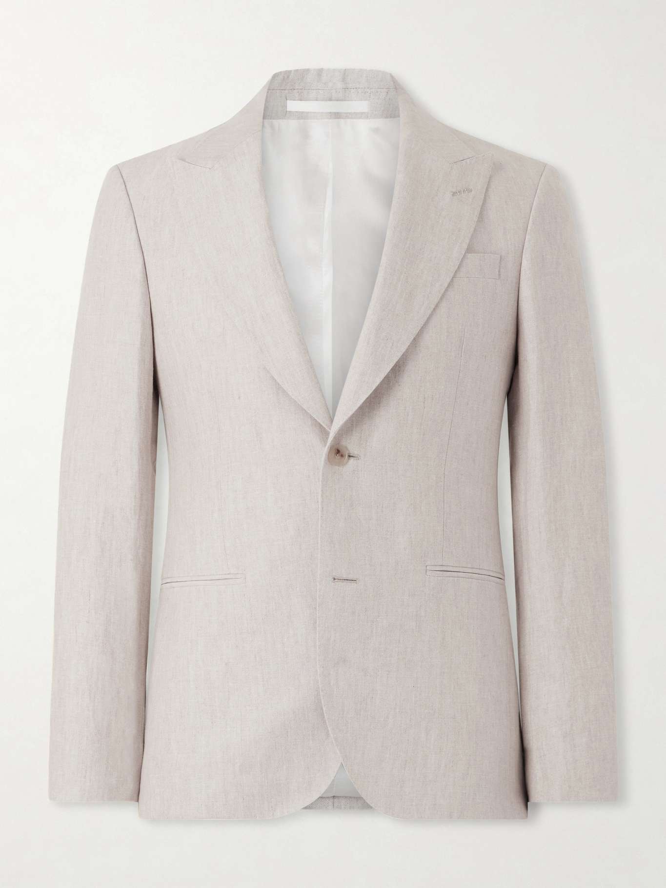 DESIGNED BY MR PORTER. Mr P. approaches formalwear with a lighter hand in this tuxedo jacket, balancing structure with breathability. Cut from linen in a slim fit with a two-button closure, it has a clean, modern profile.