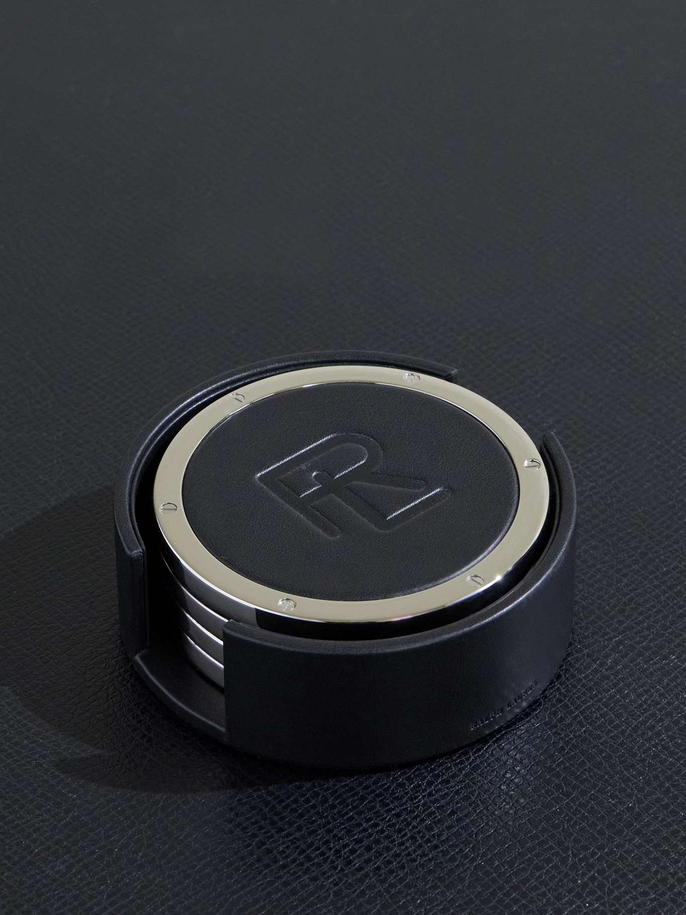 RALPH LAUREN HOME Stacked Silver-Tone Leather Coaster Set