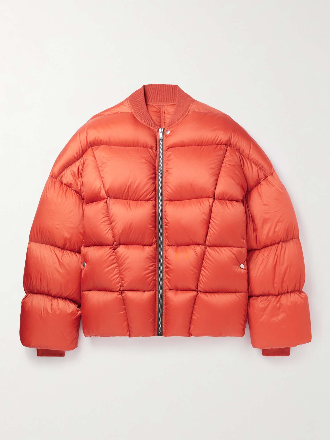 The orange puffer jacket has become an iconic design for Rick Owens. This iteration is cut for a boxy fit with rounded shoulders that fall to wide arms. Detailed with a silver-tone zip fastening and matching studs at the pockets, this piece nods to minimalism.