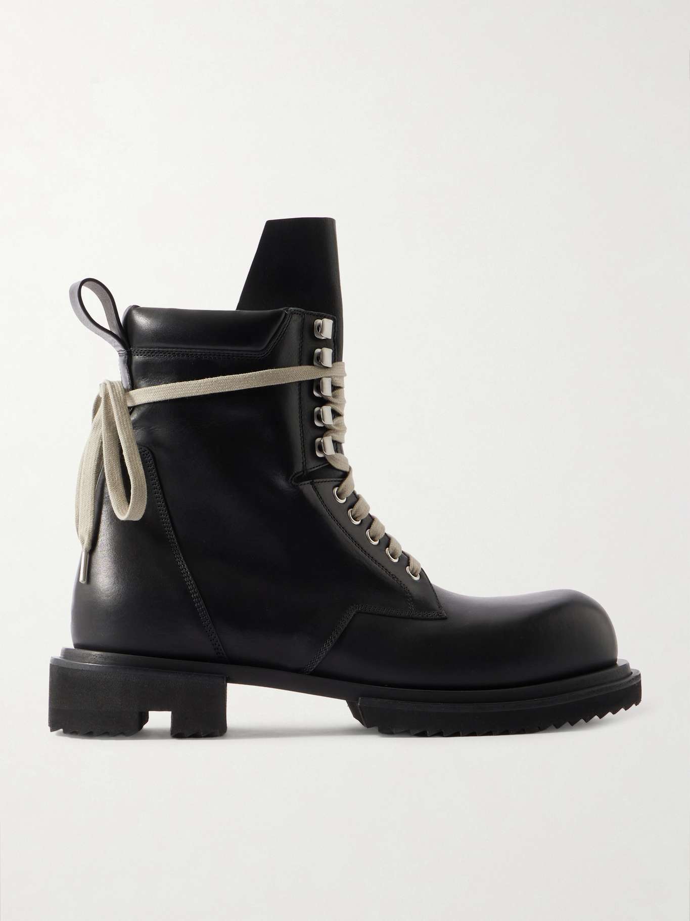 The gothic undertones to Rick Owens' collections come to the forefront in the exaggerated shape and details of these 'Army Gabe' boots. Crafted from glossy leather, they have elongated tongues, contrast laces and chunky rubber lug soles for plenty of grip underfoot. Tie the laces at the back to emphasise their punk spirit.