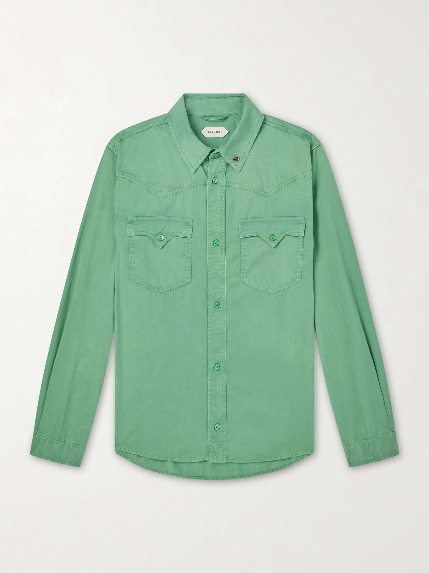 Versace approaches shirting with a confident, design-led sensibility. This shirt is cut from cotton-poplin, giving it a smooth, lightweight handle and a crisp structure.