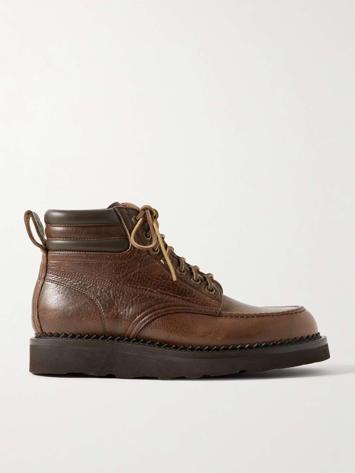 EXCLUSIVE AT MR PORTER. Yuketen's work boots are crafted from premium brown leather. Designed with pinked welts, they have padded collars and are set on lightweight, durable Vibram Morflex rubber soles for grip.