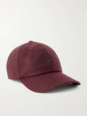 Logo-Embroidered Leather-Trimmed Wool-Flannel Baseball Cap