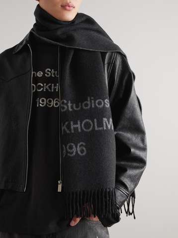 Venus 1996 Logo-Jacquard Fringed Wool Scarf