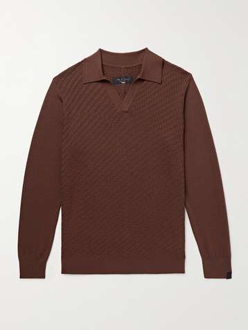 Charles Johnny Slim-Fit Textured-Knit Wool Polo Sweater