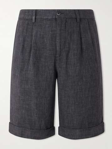 Scandola Simodo Straight-Leg Pleated Linen-Blend Gabardine Shorts