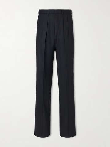 Straight-Leg Pleated Striped Grain de Poudre Wool Trousers
