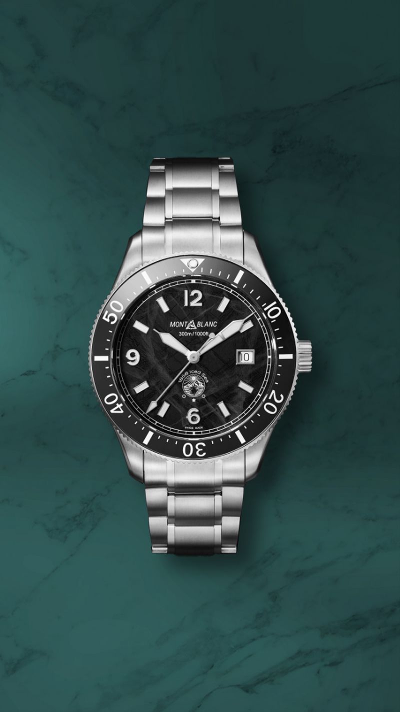 Montblanc’s first serious dive watch, the Iced Sea is named after the Mer de Glace, the largest glacier in France and has a dial to match. But don’t worry; it will handle water in its liquid state just as well, with a 41mm stainless-steel case, ceramic bezel and 300m water resistance.