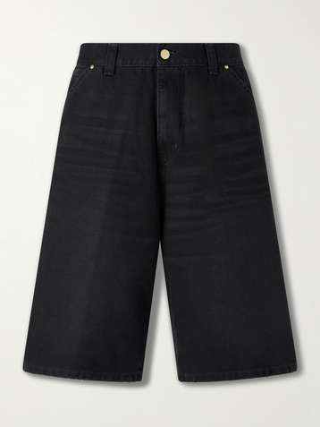 Walter Single Knee Wide-Leg Cotton and Linen-Blend Canvas Shorts